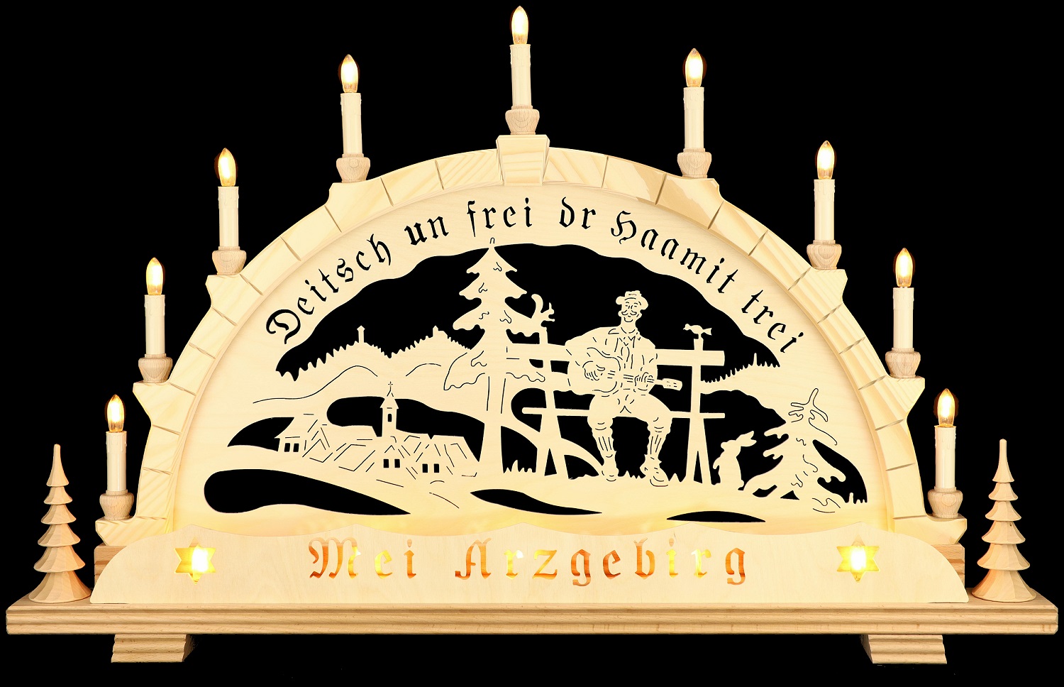 Alle Schwibbögen werden in solider Handarbeitsqualität aus heimischen Hölzern und VDE-geprüften Elektrobauteilen in traditioneller, erzgebirgischer Handarbeit hergestellt.