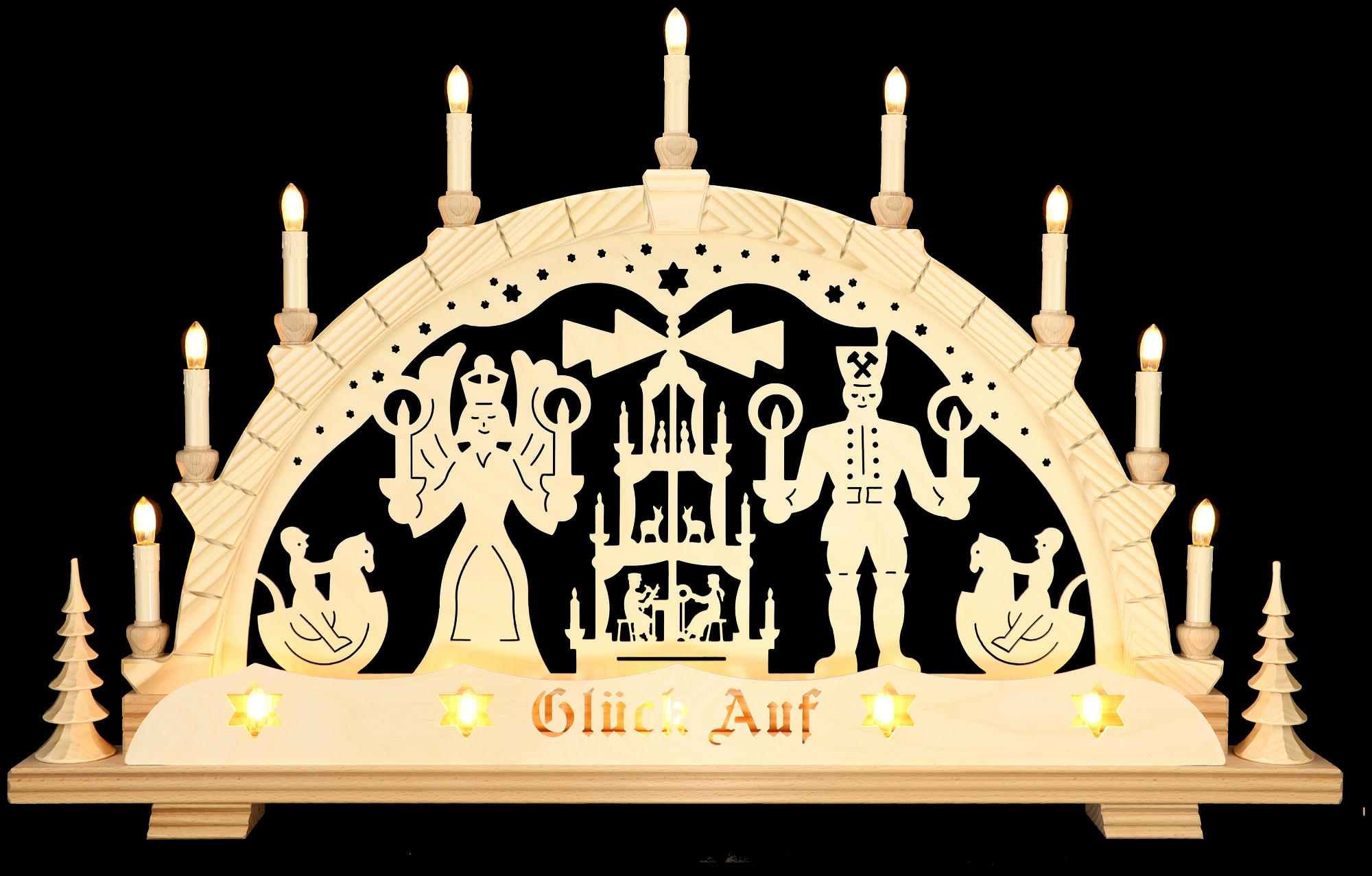Alle Schwibbögen werden in solider Handarbeitsqualität aus heimischen Hölzern und VDE-geprüften Elektrobauteilen in traditioneller, erzgebirgischer Handarbeit hergestellt.