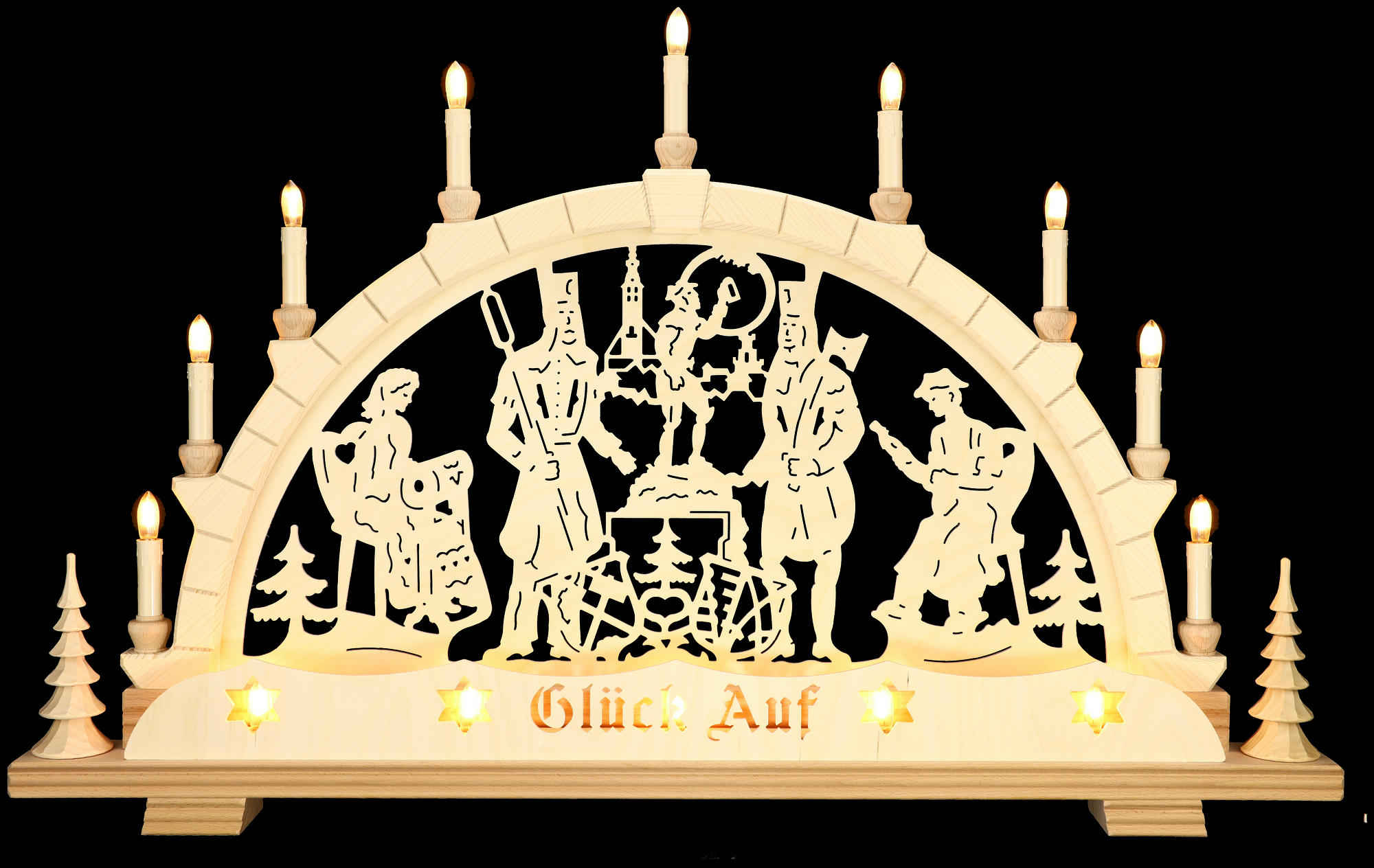 Alle Schwibbögen werden in solider Handarbeitsqualität aus heimischen Hölzern und VDE-geprüften Elektrobauteilen in traditioneller, erzgebirgischer Handarbeit hergestellt.