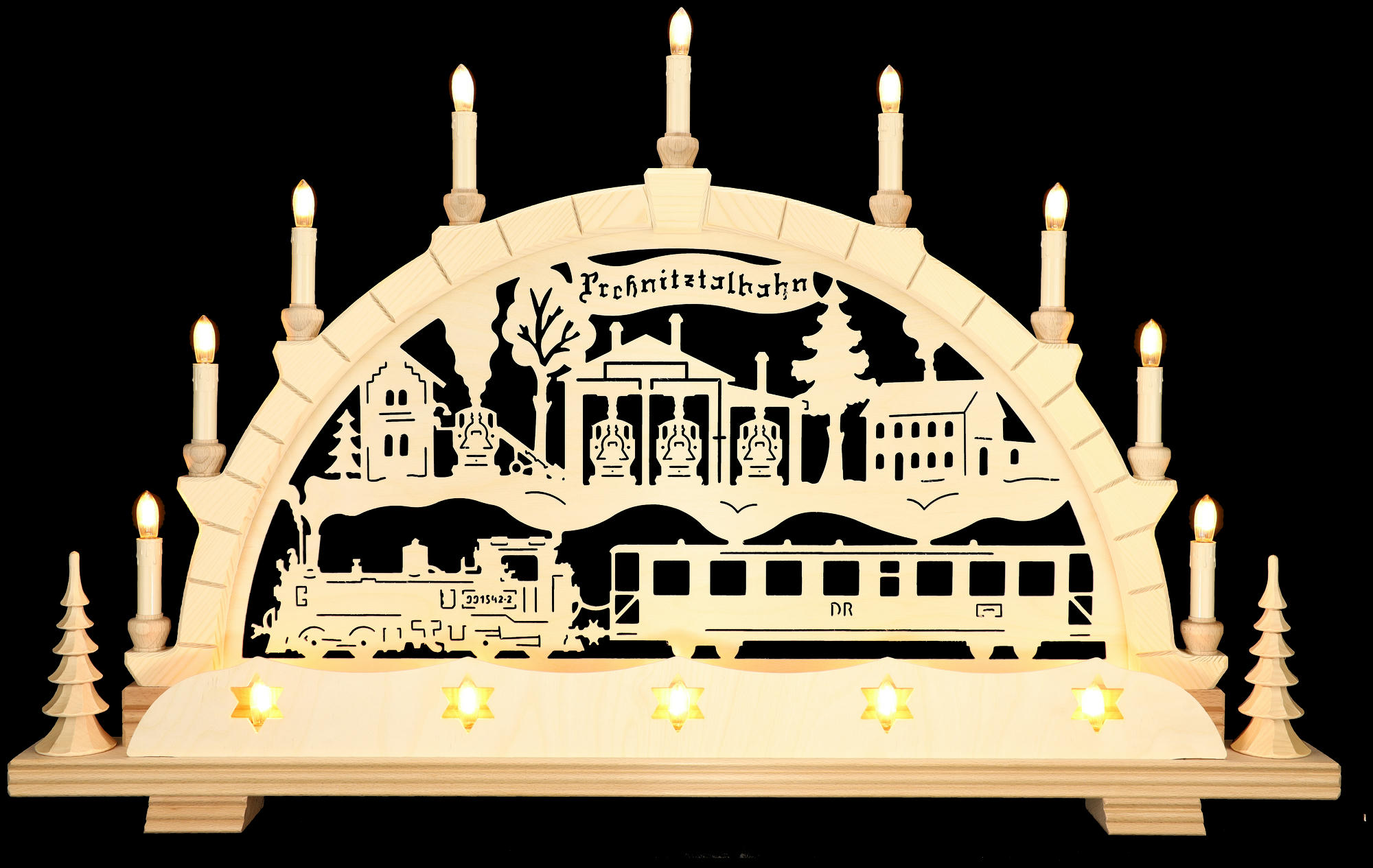 Schwibbogen mit 14 Kerzen Vorderbeleuchtung und 2 geschnitzten Bäumen